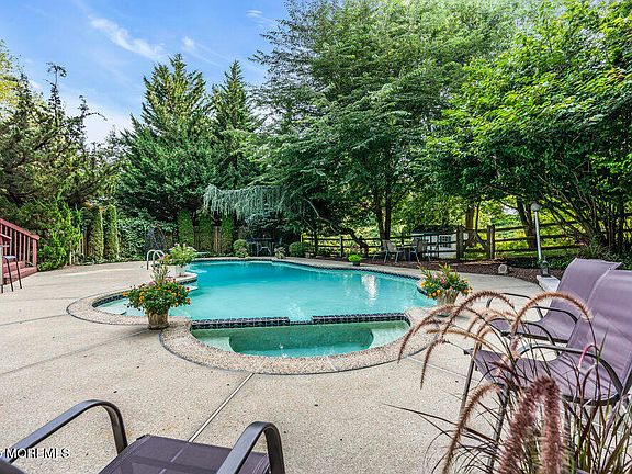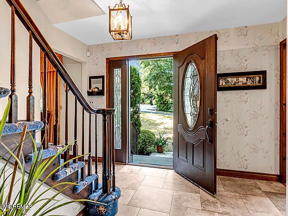 This home is where memories are made to be cherished. Perfectly located Oak Hill home on a quiet cul-de-sac, this spacious center hall colonial featuring 4 BDRMs, 2.5 Baths which backs up to the woods for complete privacy is a must see. This lovely home offers All-Season entertaining from the great room which leads to a large deck overlooking a heated pool with attached hot tub & a fire-pit in a tranquil park-like setting to the cozy atmosphere in the family room with a wood-burning fireplace which leads into a large sunny living room. Step into the spacious kitchen with granite countertops. stainless steel appl & glass sliders to a smaller deck for morning coffee or evening cocktails. Off the kitchen is a sizable dining room for family/friend gatherings. Upstairs features 4 generously sized bedrooms, including a Primary Suite with an en-suite bath & walk in closet. The Primary bath has dual granite vanities and a heat lamp in the shower area. Three additional generous size bedrooms share a full updated bath/shower on this level. Note: wood flooring in most rooms which are carpeted over. The full basement with high ceilings present endless opportunities for a gym, workshop/storage along with the 2 car garage off the basement is an added benefit. There is also an in-ground sprinkler system in the front/back. Grass areas have been enhanced. Conveniently located to NYC transportation access, best of Jersey beaches, restaurants, shopping and parks.