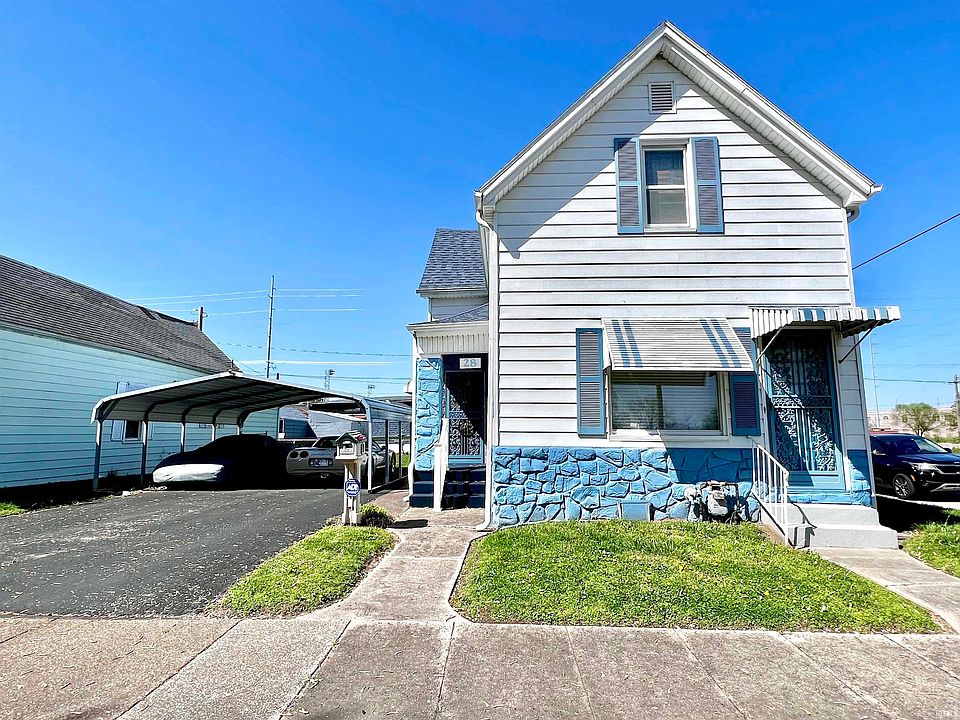 Welcome to this charming 2-story home located in the heart of Evansville, Indiana. With 2 bedrooms and 2 baths, this home offers comfortable living for any home buyer. The first floor of the home boasts a spacious living room, perfect for hosting guests or enjoying a quiet evening in. The kitchen features modern appliances, ample counter space, and plenty of storage. The adjacent dining area is perfect for dinners or entertaining. Upstairs, you'll find two bedrooms and a nice space for an office or craft room. The home also features an oversized 1.5 car garage, providing plenty of room for a car, additional storage and tinkering on the 2 work benches. The 2-car carport offers ample space for additional vehicles. This home sits on a double lot, offering plenty of space for outdoor activities and gardening. The backyard covered patio off of the garage, provides outdoor relaxation for you and guests.