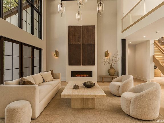 At Linea Terra, design is not decoration, it is devotion. White oak, brass, marble, and travertine are not finishes; they are the foundation. Raw. Real. Eternal. Every element is chosen for its truth, its texture, and its ability to age with grace. From sculptural brass sconces to grounded marble fireplaces, from Tuscan travertine arches to the warmth of white oak beams, this is a home that breathes with you, holding space for stillness, celebration, and renewal. Set on just over an acre in the prestigious Stone Hill gated community of Muttontown, Linea Terra is more than a residence. It is a living composition: rooted in nature, elevated by design, and executed with masterful precision. Inside, soaring ceilings, dramatic floor-to-ceiling windows, and wide-plank oak floors flood each room with natural light and frame lush landscapes. Custom built-ins, imported marbles, and curated European fixtures bring warmth, elegance, and singular character. Two kitchens, a dramatic main chef’s kitchen with Tuscan marble and Wolf, Sub-Zero, and Gaggenau appliances, plus a full secondary prep kitchen, make entertaining effortless. The meditation room, crowned with a constellation ceiling, symbolizes the interconnectedness of all things, inviting the mind to expand beyond stillness. The library, clad in white oak and anchored by a sculptural black marble fireplace, is a luminous retreat enhanced by Apparatus and Moooi lighting. Outdoors, a private resort-like setting unfolds with an infinity-edge pool, sunken firepit lounge, and expansive terraces designed for both intimate mornings and grand gatherings. Linea Terra is not simply built. It is composed. A sanctuary timeless, grounding, and alive. *Total 9k SF includes above grade unfinished lower level