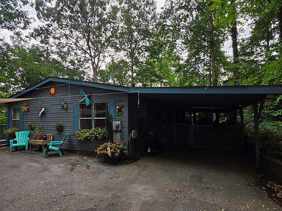 Peaceful, private setting in Franklin's premier 55+community, Hiland Park. Close to town, convenient location, come and enjoy the mountain breezes from two decks, a covered back porch and spacious .74 acre. Open floor plan features kitchen/living room family room combo, with adjacent dining room. Split floor plan offers guest room ensuite and master bedroom ensuite. Laminate and tile floors throughout. Enjoy winter views of nearby hills from the large private deck, or cool shady afternoons on the rear deck next to the fish pond.