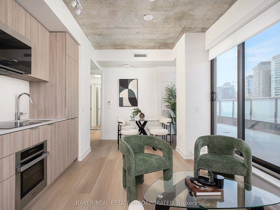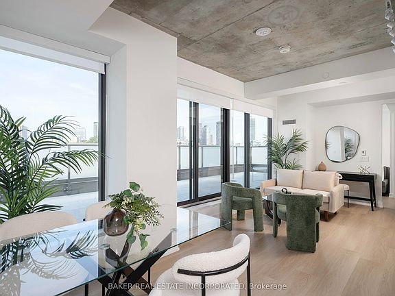 28 Eastern, located in Corktown's newest 12-storey boutique building. Step into this newly released 2-bed plus den and immediately feel the sense of space. The generous open-concept layout features a loft-like feel with vinyl flooring throughout. The northeast-facing, floor-to-ceiling windows ensure the unit is bathed in natural light, creating a bright and airy atmosphere. The large terrace is a true standout since it offers lots of privacy, creating a perfect secluded retreat, complete with a gas line for your bbq and a hose bib-a rare and luxurious feature that truly enhances condo living. Another highlight of this unit is the second bedroom. With direct access to the spacious balcony, this exclusive space provides a quiet spot to enjoy your morning coffee or evening wine. Both bathrooms are elegantly upgraded with accent walls. Located in the heart of Corktown with a walk score of 95 and Transit & Bike Scores of 100, you're just minutes from the Distillery District, Canary District, St. Lawrence Market, and the Waterfront, with easy access to the DVP, Gardiner, TTC and the future Corktown Subway Station. Enjoy premium amenities including a 24-hr concierge, fitness studio, rooftop terrace, work pods and more. Parking and locker available for purchase. Special incentives, please contact sales representative for details.
