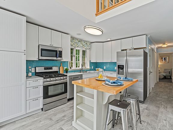 Charming 4-bedroom, 2-bath Cape Cod home just a short stroll from Long Sands Beach. Nestled on a private road, it boasts an open layout with a bright, updated interior with soaring vaulted ceilings, a modern kitchen featuring stainless steel appliances, and spacious living areas enhanced by cathedral ceilings and skylights. The first floor offers three furnished bedrooms, a laundry area, and a full bath, while the second floor includes a cozy loft office nook, an additional full bath, and a private furnished bedroom. Additional highlights encompass built-in features, a standby generator, and a newer heating system, along with parking for four vehicles and access to town water and sewer. Owner pays for sewer and water while tenant is responsible for electric and gas. Owner also pays for snow removal services for the driveway.