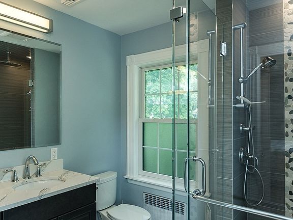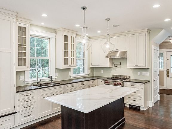 FOR RENT - Stunning total new renovations throughout. FIRST FLOOR: living room, dining room, half bath. CHEF's kitchen with stainless appliances (WOLF stove, ASKO dishwasher), stunning Calcutta white QUARTZ island + countertops, hanging pendant lighting and surround sound speakers. SECOND FLOOR: 3 bedrooms + 2 full modern baths. Primary bedroom with en suite spa-like bath. Modern glass enclosed shower with modern tile surround. All NEW windows. Wonderful fenced yard, wood floors, 2 car garage plus 2 driveway. Small non-shedding dogs negotiable. Tenant is responsible for yard care, snow removal and all utilities including water/sewer, gas and electricity. Avail now