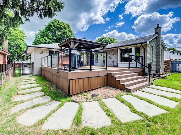 Beautiful bungalow on a large deep lot with in-law potential. Stunning and extensively upgraded, this expansive 4-bedroom, 2-bathroom bungalow blends refined design with everyday comfort. Situated on a beautifully landscaped lot, the home features grand windows throughout, flooding the space with natural light. The spacious kitchen boasts abundant cabinetry and pot lights that extend to the dining area and above the living room windows, while the main bath impresses with heated floors and under-vanity lighting. A cozy family room with a remote-controlled natural gas fireplace leads to a stunning, professionally built brick addition, surrounded by windows it is perfect for relaxing or entertaining. The lower level offers a ground level, separate entrance, a fourth bedroom, a separate room for a home office, kids playroom and more! The spacious laundry room, and an oversized workshop is also located in the basement. Outdoors, enjoy a private backyard oasis with a composite deck, glass and aluminum railings, a natural gas BBQ, and a fully fenced yard for pets and family to enjoy. Complete with a 1 car garage and 2-car driveway. Plenty of upgrades within the home including a brand new A/C system installed this year, new doors and hardware throughout! A rare opportunity to own a versatile, well-maintained property in a desirable location close to schools, parks, shopping and much more!