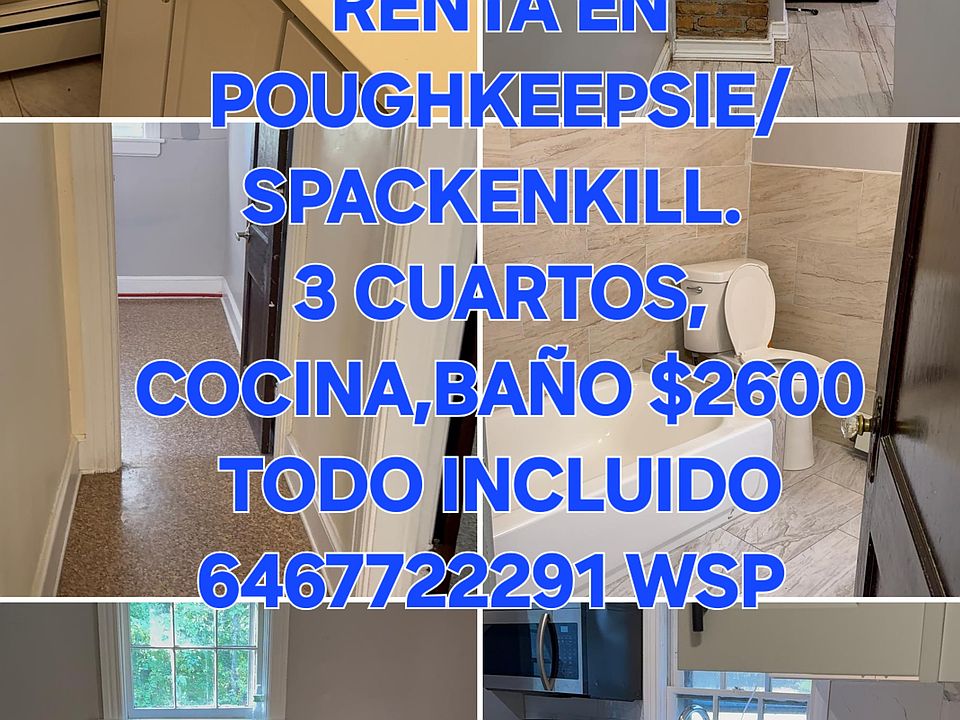 ONLY SPANISH PEOPLE Hermoso apartamento casa totalmente privada , primer piso , incluye Luz , Agua , Vasura , Parking. A continuacion de la ruta 9 , pertenece a la mejor escuela de Spackenkill, area super tranquila por solo $2700 dolares , no tienes q preocuparte por nada, precio muy accesible para mas informacion comunicarse al mi WhatsApp or email