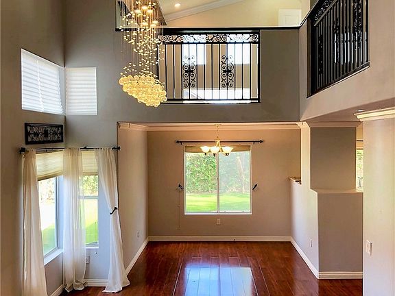 Popular "Acclaim" model located in the Vintage Promenade neighborhood of Foothill Ranch. Naturally light and bright, this spacious 3 bedroom + loft floorplan offers wonderful improvements throughout. First floor highlights include engineered hardwood flooring along with custom baseboards and crown molding. Newly remodeled gourmet kitchen has been accented with beautiful granite counters, new cabinets, center island & stainless steel appliances. Large family room with custom fireplace & media niche. Separate formal living room & dining room with large, vaulted ceiling. Refrigerator, Washer & Dryer are included. Upstairs features 2 large secondary bedrooms along with a spacious master suite offering a walk in closet, updated lighting, and dual vanities. Also up on the second level is an additional loft overlooking the living room area perfect for an office, playroom, or den. Private rear yard great for entertaining. Lush tropical landscaping front and back, along with water resistant turf grass. Custom stone inlay hardscape & patio cover. This home also has solar panels for reduced electric payments. 2 car garage equipped with laminate flooring, overhead storage, and 10' projection screen perfect for entertaining. Close to the 241 toll, shopping, schools & parks. This home is a must see!