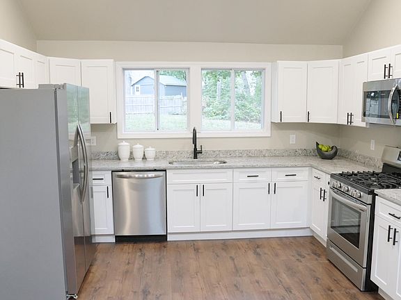 Welcome home to this 2022 beautifully renovated single-family home in a prime location close to major highways, train, shopping & schools! Situated on a private road across from conservation land in a great neighborhood, this home features a huge fenced in backyard perfect for entertaining! The open concept kitchen/living room includes custom vaulted ceilings with amazing skylights! UPDATES INCLUDE: brand new eat-in kitchen, stainless steel appliances, granite countertops, flooring, electrical, recessed lighting, plumbing, high efficiency electrical HVAC system, water heater, custom luxury bathroom & a beautiful tiled mudroom with coat hooks. In unit laundry. Exterior updates include brand new siding and new driveway/walkway! This is a non-smoking home. Pets considered for additional fee. Must have good credit. First, last & security deposit. Tenant pays utilities. Open house Saturday 11/5 11am-1230pm. Home is available now, lease available till 8/31/23. Home is staged, it will be delivered unfurnished