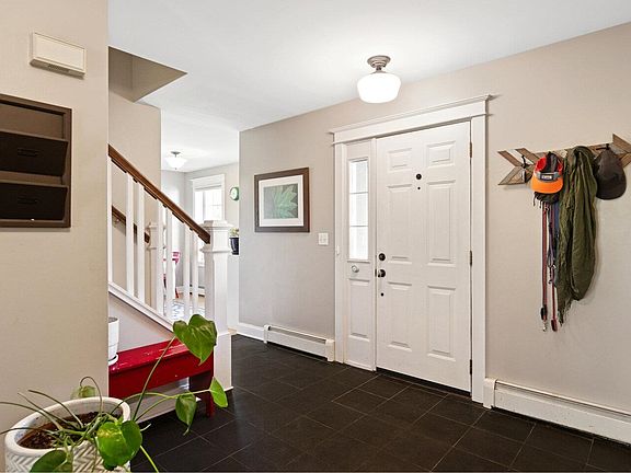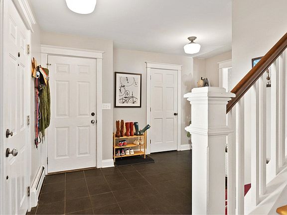 Experience the charm of this bright and airy contemporary Cape in South Burlington, ideally located on a spacious corner lot that borders the serene common land at Dorset Farms. The first floor welcomes you with a large foyer, a primary bedroom suite with an expansive walk-in closet, and a well-appointed kitchen featuring granite countertops, stylish backsplash, and stainless steel appliances. The living room, with gleaming hardwood floors, flows seamlessly onto an oversized deck with composite decking, offering a picturesque view of the beautifully landscaped backyard. This level also includes a formal dining room, charming breakfast nook, and half-bath. The second floor features three additional bedrooms, a generous walk-in closet, and full bath. The first and second floors of the home feature gleaming hardwoods and Vermont slate tile flooring. The lower level is a versatile space with a spacious family room illuminated by daylight windows, an office, and built-in storage in both rooms. Energy efficiency is enhanced by owned solar panels installed on the newer roof. The attached two-car garage offers ample storage, including overhead steel racks. 28 Floral Street is within easy reach of South Burlington schools as well as trails, the bike path, I-89, parks, Burlington International Airport, UVM Medical Center, and nearby colleges. This move-in-ready home is waiting for you to enjoy all its wonderful features!