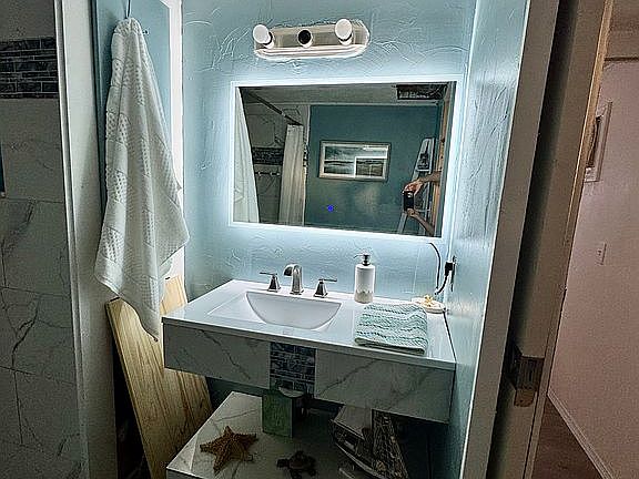 The bathroom is wonderful , rain shower lights up, defogging , light up mirror, new toilet.