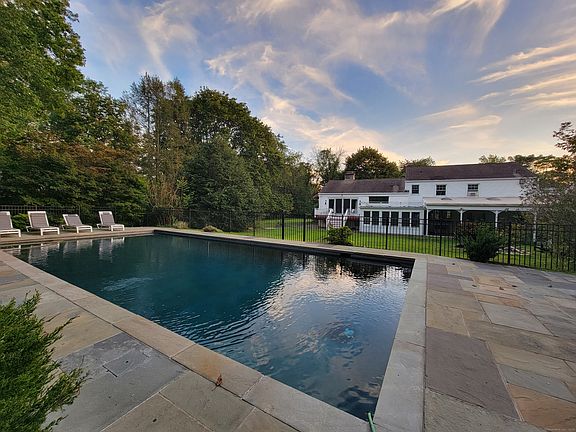 Private oasis on 2.08ac. Mini Estate with matured trees, 3,887sq.ft 11 Rm, 4Br. 3Full Ba. & 2 Half Ba. of living space & 3 car. gar. Minutes to major highways, shops, entertainment and Golf Course. Inground gunite heated pool and guest house 1Br. Kit. 1Ba. Wide stone wall entry leads to the circular driveway and three car garage with parking for over ten cars. Sprinkler system and invisable fence. Hardwood floor through out. Cathedrial ceiling Autrum invites to spacious living rm. with fireplace and direct access to the back yard. Hallway leads to sun filled Play Rm. wrapped with windows, Dining Rm. with mirrored side walls, den with fireplace and to the generous size Chefs kitchen approx. 430sq.ft with marbled floor, pantry, Corian island, two separate sinks, sub zero frig & double wall ovens. Off the kitchen direct entry to up stairs-possible Au pair quarters, entry to front of the house, huge slate covered patio with sky lights, garage & half bath. Possible land subdivision buyer must do their own research in that regard. Vaulted ceiling Master Bedroom Suite, Granite Master Bath with make-up area, bidet and jacuzzi. Two other Bd. Rm on their own wing of the house sharing full bath. Pathway behind the pool leads to Coachmens Ct. cul-de-sac. City side walk and bike lane at the end of the driveway leads to Conn. Ave. Solar pannel contract. 400amp service, genarator ready. If you seek privacy this is it. As is condition. Located between Darien and New Cannan. BACK ON THE MARKET DUE TO LOCK OF BUYERS HUBBARD CLAUSE PERFORMENCE. Main entry to the house is through long driveway to circular court yard. Driveway splits to separate entry to 3 car garage and lots of off street parking. House has solar panels, connected to city water and sewer, oil heat, central air on the main floor and master bedroom only. 400 Amp service, generator ready. Pool house is on septic with propane heat and well for irrigation.