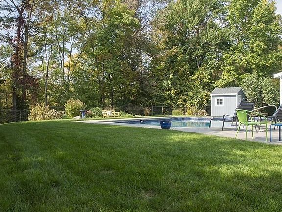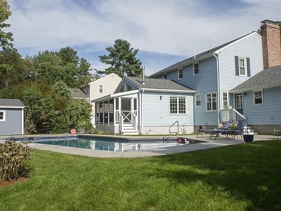 Foxhill**Classic center- hall colonial offers gorgeous updates bringing this home into today's lifestyle. Open space, glass, light, outdoor entertainment w a unique dark plastered reflective pool newly updated patio, shed. Step inside through welcoming screened porch through dble slider to a soaring ceiling family room w gas stove looking into a 27' chef's dream kitchen. An 11' island, vented oversized gas range, under counter microwave, 2 pantry closets, coffee center, tiled floor leads into a dynamic sized dining room w HW flooring circle around thru tiled center hall to LR w hardwood flooring and custom book shelves, fireplace. Pocket door opens into 10 x 10 mud room w 1/2 bath. Hardwood stairway to 2nd floor nicely sized bedrooms with great closets. Neutral calm colors throughout house and two lovely updated bathrooms. WAIT! Lower level surprise offers a TV room for fun times, newly installed flooring..super storage....rear yard privacy..walk to Spring St & Dean Park