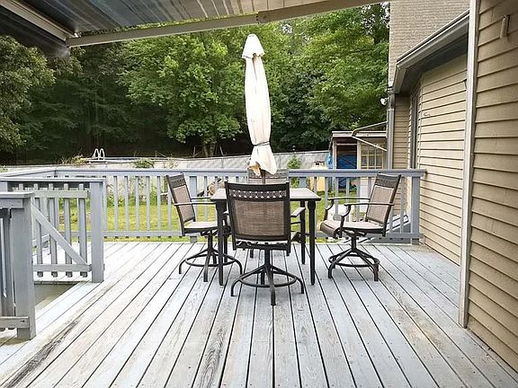With some TLC there is potential with this solid Cape that is in a desired location. As you walk up to the house and onto the front porch and enter the house, you will see the owners had added a family room addition including a wood stove which heats most of the main level, 2 car garage and a loft above with a full bath for guest or extended family to stay in. Home has a good flow throughout the dining room, kitchen, living room and the bonus 4 season sun room with a/c pump! Living room fireplace does work. Half bath and laundry is located next to kitchen as well. As you go upstairs, a master bedroom to your left, a full bath and also 2 other bedrooms. Plenty of space and storage everywhere! Full size basement with work room for your projects, a heavy duty Viesmann Furnace and a full bath, including a dog wash station. Very dry basement! Good size deck with awning overlooking back yard and pool area, a full house Generec generator that runs off propane tested weekly !