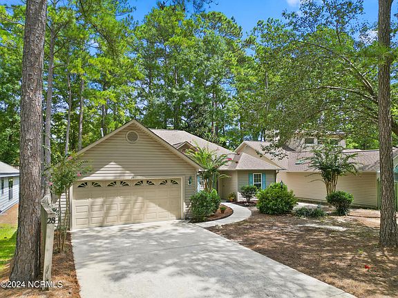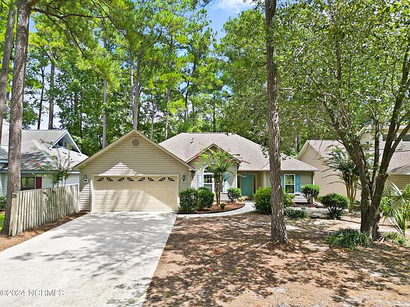 Lovely three bedroom, two bath, split floor plan. Walk through the front door into a quaint foyer complete with coat closet which leads to the heart of the home. An open floor plan is welcoming thanks to a living room with a vaulted ceiling and a wall of glass paneled doors (replaced at the end of 2023) which open to the back deck. Or park in the garage and enter through the laundry/mud room. With community amenities, public water/sewer and a tree lined, paved street this spot affords quick access to downtown Calabash, Sunset Beach and Hwy 17. Simplicity and convenience are found here!