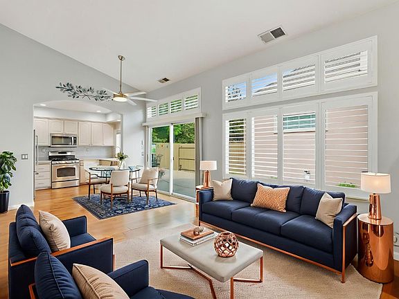 There's a special kind of warmth at 28 Genoa Courtwhere every detail feels like home. Nestled on a private corner within the gated community of Villa Palazzo, this residence invites you in with graceful architecture, soaring ceilings, and sunlight that dances across rich hardwood floors. The open layout is designed for connection and comfort, leading to a chef-inspired kitchen with stainless steel appliances, recessed lighting, and custom finishes that make every meal feel like an occasion. French doors open to a serene denperfect for quiet mornings, creative moments, or an extra bedroom. Step outside and fall in love with the hand-painted mural that turns the backyard into a living canvas. Surrounded by garden beds and shaded by a retractable awning, it's a space made for special evenings and joyful gatherings. With community amenities including a pool, gated security, and front yard care, life here feels effortlessly elegantjust minutes from river trails, cafes, and all the comforts of the Pocket.