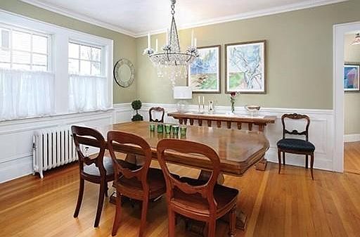 This beautiful two-level condominium is situated on a pretty, tree-lined street, conveniently located between Newton Centre and the Mass Pike. The first level features an open floor plan, as the grand piano sized living room flows into both a formal dining room and a spacious sun room. Also on this level are 3 good sized bedrooms, a travertine marble tiled bathroom, and an updated kitchen with laundry area. The second level includes a home office that leads to a large family room with skylights, and a slate tiled bathroom. From this level, an additional 200+ square feet of attic storage space is accessed; large shared yard; one-garage plus two additional parking spaces.