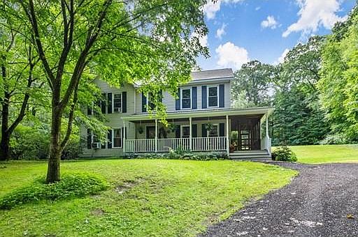 This lovely colonial home is located on 2.81 private acres in the Fiskdale section of Sturbridge. An inviting farmers porch wraps around the front of the home and includes a large screened in area. Natural light fills the eat-in kitchen, offering ample counter space and cabinets. The dining room, living room, and den are all generously sized. 4 bedrooms on the second floor including the primary bedroom with walk-in closet and a large en suite bathroom complete with full size laundry. The large basement is waiting to be finished. Updates include: new roof (2015), new windows and slider (2015), new water filter system (2017), new septic pump (2019), new heating systems and water tank (2019), additional attic and wall insulation (2019), new deck (2021), new shutters (2021), new well cap (2021), driveway regraded and tarmac applied (2021). Fenced in area and invisible fence convey with sale. Well rated school system. Close proximity to major commuting routes. Showings begin 8/21.