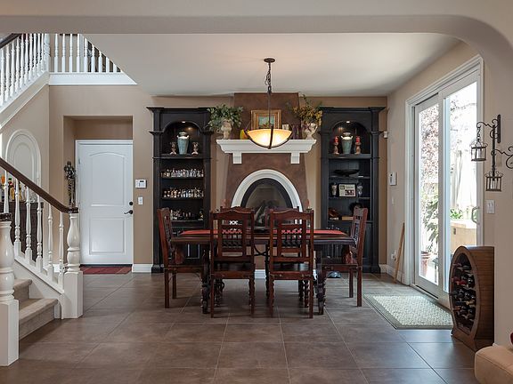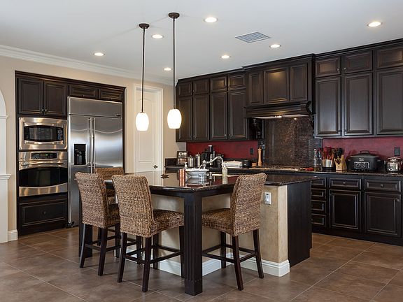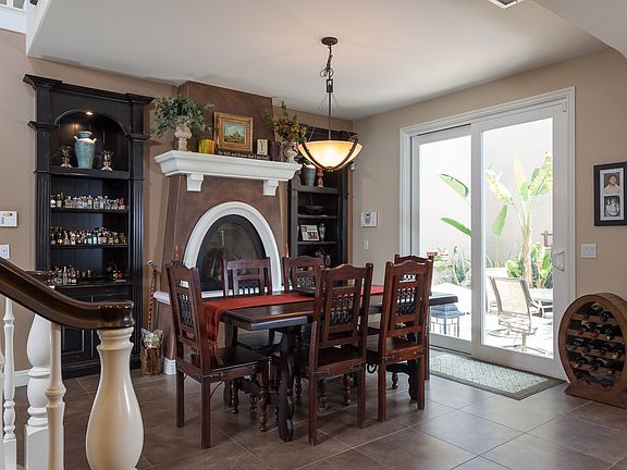Live the Country Club lifestyle in this stunning 4 bedroom, 3 full bath highly upgraded model perfect single family home. Home features long arched hall with sculpted custom wood wainscoting will catch your eye the moment you walk in. Feast your eyes on crown moldings, wainscoting, custom paint and plantation shutters throughout. Chef's dream kitchen with granite counters and a giant granite center island, walk in pantry, built-in GE monogram refrigerator and matching stainless steel appliances. Kitchen is open to the huge family room featuring custom built-in hardwood entertainment center. Dining room also features custom lighted display shelving and fireplace. An upgraded banister and upgraded carpet leads you up your elegant staircase featuring cathedral ceilings, custom paint, and just the right amount of windows. Upstairs full-size laundry room with cabinets and sink. Master suite features crown molding, chair rails, and a gigantic walk-in closet. Master bath has upgraded faucets, separate shower and huge soaker tub, dual sinks and beautiful tile flooring. 2 car garage with epoxy floors and built-in wall and overhead storage. Yard is a hardscape masterpiece with custom pavers, bbq island, tranquil fountain, and artificial turf. Hurry to this pristine home.