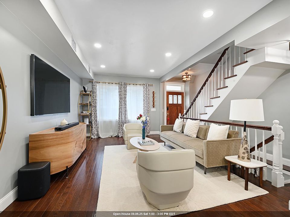 Additional highlights include hardwood floors throughout, central A/C, and a washer/dryer. Conveniently located near train, bus, shopping, parks, and schools, this home blends comfort and accessibility in one of Jersey City’s most vibrant areas.