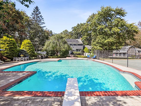 A Rare In-Town Estate set on nearly 5 sweeping acres in the heart of Newtown, this gracious homestead offers refined living and everyday enjoyment in an unrivaled location just a short stroll to schools, shopping, restaurants, Cyrenius Booth Library & Newtown's infamous Labor Day Parade plus Halloween & Christmas on Main celebrations. The main residence offers comfortable living at its best with purposeful & relaxed rooms & coveted features. Both the stunning gourmet kitchen with its granite counters, Stainless Steel appl incl the gas cooktop, wall ovens, butlers pantry & built-in hutch with beaded glass & interior lighting, stone fully heated flooring & the incredible Primary Bth showcase high-end luxe cabinetry/fixtures by Klaffs. An inviting Living & Dining Rm lead to the Family Room retreat where you can enjoy an evening fireside. If working from home is necessary, look no further as here you will find a gracious sized private light filled Study/Home Office adorned with a convenient wet bar. When the day is done, take a breath, relax in the all-Season Sun Room & enjoy the glorious views of the naturalistic outdoor gardens & pool. The 2nd level offers 5 Bdrms to slumber. Comfort is elevated w radiant heated floors in the Primary Bathroom & kitchen. At 28 Grand Place outdoor living is unrivaled-an impressive heated saltwater pool/spa/cabana with island seating/kitchenette/full bath with changing room, a regulation har-tru tennis court/firepit/patio areas for lounging & dining surrounded by expansive lawns/gardens that border over 100 acres of town meadows. The property is enclosed with an electric dog fence and there is an underground irrigation system to keep the grounds looking pristine. Just steps from the main house, a detached three-car garage opens up to reveal a beautifully designed guest apartment complete with spacious media/rec room, kitchenette, bedroom (this is the 6th bdrm) & full bath-the perfect setup for hosting friends & family or creating a private retreat. Whether you're showcasing your vintage car collection, storing your favorite recreational gear- bikes, mopeds, skis, golf cart-or simply in need of extra space, there's room for it all. When it's time to switch gears from poolside relaxation, head indoors to your very own half-size indoor basketball court (converts to a volleyball court-net included) with a private half bath. Rain or shine, play a pickup game, practice your free throws (or practice gymnastics on the included gym mats), turn the space into a calming yoga sanctuary. This one-of-a-kind property doesn't stop there. Additional highlights include Solar panels offering incredible energy efficiency and annual savings and Tesla EV charging station for modern convenience. In addition, you'll find a whimsical, chandeliered hen house and goat barn for your backyard hobby farm dreams. City water, sewer, natural gas, and an automatic full house generator for both the main house and guest house provide peace of mind year-round. On the lower level of the main house, various unfinished areas have been put to good use & include a billiards room, dedicated fitness areas for boxing/cardio/yoga & free weights to support your wellness goals-no gym membership needed! All this set on one of the most desirable in-town street-a quiet, U-shaped road no less, this home offers the feel of a private country retreat while being just a short stroll from the heart of Newtown with its charming shops, restaurants & timeless small-town pleasures. With flexible living spaces, refined amenities, and unforgettable character, this is more than a home- it's a lifestyle that embodies refinement, relaxation and tranquility. Whether you're entertaining, unwinding, or simply enjoying the every day, this extraordinary property allows you to live your best life without ever needing to leave. Enjoy the video