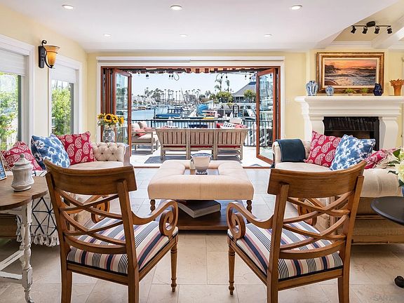 Exquisite remodel home, gourmet kitchen with temperature-controlled wine storage, natutal light, fireplace, spacious rooms, balcony, hot tub, Solar. Gorgeous Coronado Cays home with south-facing patio and double channel views, private dock that accomodates a 60' Yacht.