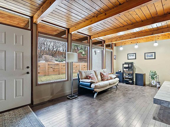 Warm cork flooringBright kitchenStainless steel appliancesCozy family roomIn-home saunaBeautifully landscaped yardStunning retaining wall