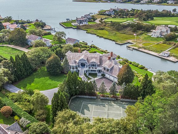 Theres no need to look farther east when you can own your own estate section-style home in Westhampton Beach. An impressive waterfront property with gated entrance; magnificent sunset views; deep water dock with boat slip; water-facing Gunite pool with separate extended lap lane; spa; sunken Har-Tru tennis; landscaping by Edmund Hollander; and a proper 10,500-square-foot manor houseall built to exacting standards. Protected and secure, this outstanding 2-acre property offers 350 feet of bulkheaded frontage, reinforced pilings, open bay vistas and views of several Westhampton Country Club fairways. Custom built and sparing no expense, the classic shingle-style home is a study in understated elegance and luxe creature comforts. Perfect for entertaining and hosting, outstanding features include superlative construction and materials throughout; a well-equipped primary suite with fireplace, pair of sitting rooms, double closets and baths; a chef-grade kitchen suite with informal living room, formal dining and screened-in informal dining with fire pit and deck access; lower level with wet bar pub room / playroom and gym; and multiple Moriches Bay-facing balconies and decks.