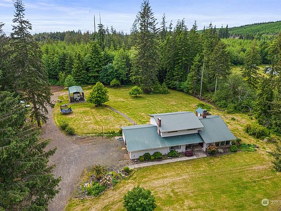 If you are looking for a large home with character, you have found it! 5 bedrooms, 3,100 sqft, 2.75 baths, secluded 2 acres, with tlc shop can be brought back to life, large covered carport for RV parking, finished shed would be great for hobbies, and attached 2 car garage with tons of work space, with wood burning fplc. 2 large living rooms, each also with wood burning fplc and large windows letting in an abundance of natural light. Kitchen has pantry space, island, and dining area with propane fplc to keep you warm while sitting at the table. Primary bedroom on main level with 3 piece bath, a second bed, full bath, and large mud/laundry room. Upstairs full bath, and 3 more large bedrooms, one offers a balcony overlooking the backyard.