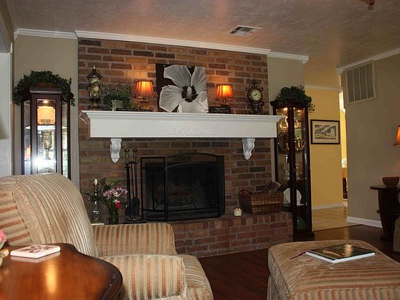 Perfectly maintained 4 bedroom 2 bath home features large den, formal living with brick fireplace, neutral colors, kitchen with eating area. Entire home has been remodeled! Fresh paint, new carpet, new flooring. Beautiful updated bathroom. Also includes nice sized yard with privacy fenced & large shed. Oversized front porch & covered back patio.