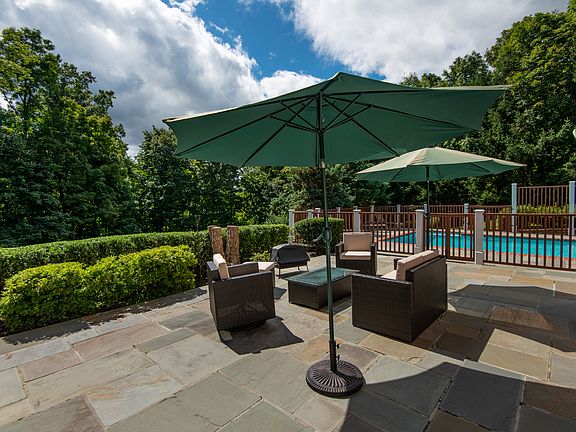 Young, fresh and spacious shingle style colonial with beautiful heated gunite pool. Chappaqua schools. Gated, private tree lined property with a long estate-like entrance, this home has 10' ceilings, three fireplaces and all hardwood floors. Fabulous white chef's kitchen with new backsplash and lighting. Top of the line appliances with Subzero refrigerator and wine cooler, Thermador professional 6 burner cooktop, double wall ovens and Fisher Paykel double drawer dishwashers. Finished lower level with gym, media room, nanny's room, full bath and French doors out to the pool and yard. Exterior shingle freshly stained and painted. Excellent layout with a first floor office and all 4 bedrooms on second floor with an additional sitting room/guest room (lives like a 5 bedroom). Huge walk up attic great for storage. Fantastic location and easy walk to train and town!