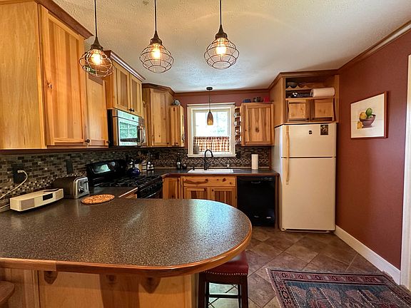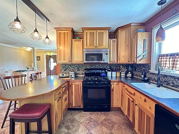 Cozy and comfortable - that's what you think when you walk in the door of this well-built and nicely finished ranch style home in Lisbon Falls. The eat-in kitchen features a tiled floor, custom cabinetry with lazy Susan corner cabinet, custom spice rack, lift out mixer stand and more. The dining area of the kitchen has plenty of room for a table but also has a bar for casual dining as well as a built-in china cabinet/linen storage. The living room features nice large windows providing plenty of natural light as well as nice hardwood floors. There is also a built-in TV stand and one of the two heat pumps here. The main floor is completed by 2 bedrooms (the primary bedroom also has a heat pump) as well as a tiled full bath with tub/shower combo and good size linen/towel closet. Both bedrooms feature large closets and light colored hardwood floors and the primary bedroom has large windows for plenty of sunlight.