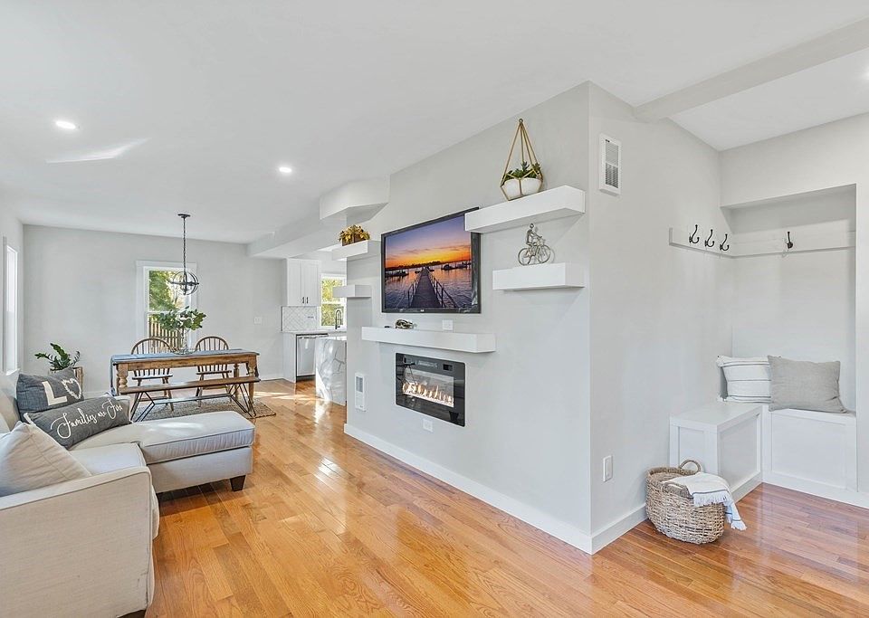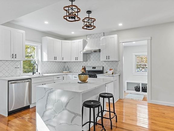 2021 GUT renovation in HOT Melrose! Your home search ends now! Impressive build quality with no detail overlooked. This charming colonial-style home features 4 beds, 2.5 baths, hardwood floors, recessed lighting, 4 parking spaces, and thoughtful touches not typically found in this price range. The 1st floor offers a living room w/ fireplace, dining room, office suite, farmhouse kitchen w/ quartz countertops, S.S. appliances and gas cooking. 2nd level includes 3 bedrooms, 1 full bath and a laundry room. 3rd level offers primary bedroom, full bath, and a walk-in closet . Situated on an ended way, in Melrose, this home is located in a convenient location to Rte 93, public transit, Ell Pond Park, Middlesex Fells Reservation, Whole Foods and all that Melrose has to offer!