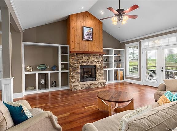 This stunning, meticulously maintained, craftsman style home with sweeping long-range views is a must-see. Located in a peaceful, upscale community 10 minutes from downtown Weaverville and 20 minutes from downtown Asheville, it's well situated for those who love country living and city life. Character abounds with an open floor plan, Cherry hardwood floors, crown molding, stylish wainscoting and extra-tall windows. The living room has a vaulted ceiling and gas stone fireplace surrounded by built-ins. Get cooking in the gourmet kitchen with granite countertops, custom cabinetry and stainless steel appliances including a double oven. Under tall ceilings in the lower level, you'll find two luxurious family rooms, two bonus rooms with closets, and an extra room ideal for a wine cellar. Relax and entertain outdoors on the back deck or in the professionally landscaped yard with terraced gardens, fruit and flowering bushes galore and a stone fire pit. This home has it all and more!