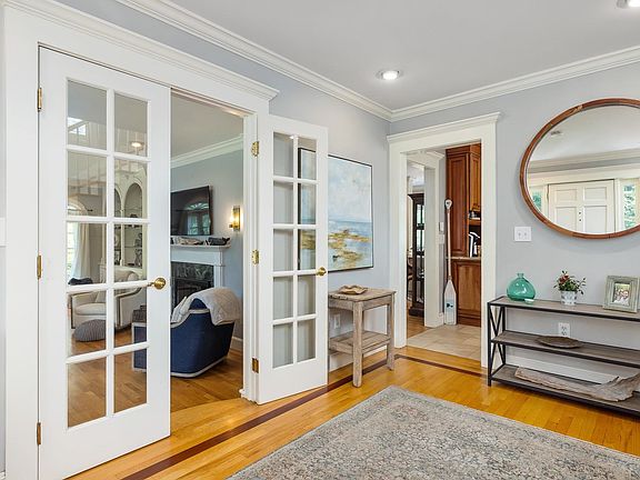 Nestled on nearly two beautifully landscaped acres on a quiet cul-de-sac, this exceptional property offers a rare combination of natural beauty, privacy, and luxurious living. The centerpiece of the outdoor oasis is a stunning PebbleTec pool with a waterfall, complemented by a serene pond and lush gardens. An outdoor shower and poolside bathroom add to the convenience and resort-style feel. Inside, skylights flood the main level with natural light. There are 9+ foot ceilings, highlighting the open, thoughtfully designed floor plan. The gourmet kitchen features custom cabinetry, granite countertops, a breakfast bar, and flows seamlessly into the dining area, sitting room, and family room—all with sweeping views of the grounds. A cozy formal living room with a wood-burning fireplace and glass French doors offers a quiet option where one can retreat. Hardwood and ceramic tile flooring extend throughout the home, which also benefits from radiant heat—on the main level and in the oversized 3-car garage. Upstairs, you’ll find two en suite bedrooms, along with a third en suite bedroom with a sitting area—currently configured as an accessory dwelling unit with a private entrance but easily reconnected to the main home. The finished lower level offers flex space that includes a 3/4 bath, ideal for a home office, gym, or media room. Additional highlights include a top of the line Buderus heating system, new roof, fencing, and gated entrances to a circular, estate-like driveway.