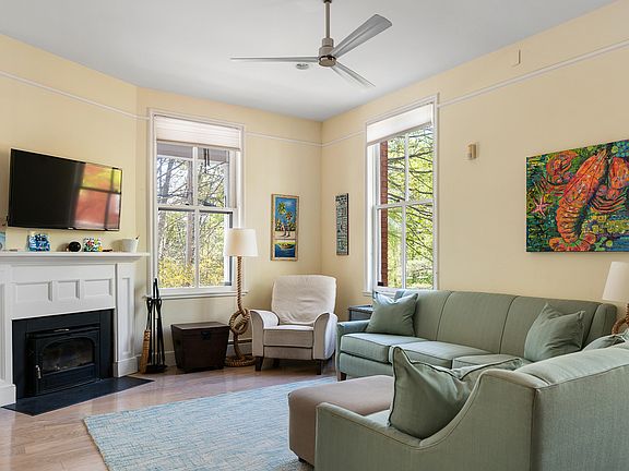 Amazing opportunity to own a beautiful townhome at Diamond Cove on Great Diamond Island. Imagine escaping to island living at its finest, just a short and scenic boat or ferry ride from Portland.This delightful 4-bedroom, 2.5-bath townhome has been expertly renovated and offers a wonderful blend of classic charm and modern amenities. The kitchen is a highlight, featuring stunning quartz countertops, custom cabinetry, a built-in pantry, and top-of-the-line stainless steel appliances, including an induction stove with a double oven, a microwave, and a Bosch refrigerator and dishwasher. The family room provides a cozy atmosphere with a beautifully carved mantel and a wood stove insert, perfect for cooler evenings. With four spacious bedrooms and a total of 1664 square feet, there's ample room for family and visiting guests. The second-floor full bathroom boasts a stylish concrete topped vanity and elegant marble tile floors and high end fixtures. Additionally, there's a newly renovated full bath on the guest room level and a convenient half bath on the first floor. The classic covered front porch is exceptionally spacious, offering an ideal spot to enjoy your morning coffee or host happy hour gatherings. Island living is made easy with reliable ferry service and a dedicated on-call staff. Picture yourself planning your day from the porch and then hopping into your included golf cart for a quick ride down to your boat at the marina. With some of the best boating in New England right at your doorstep, this location is truly exceptional. Residents also benefit from fantastic association amenities, including a workout gym, lounge area, an antique bowling alley, shuttle service, hiking trails, a pool and patio area, tennis courts, and five common waterfront areas for owners and their guests to enjoy. With no cars allowed this is a great haven for young and old alike and located only 3 miles from Portland. Sold mostly furnished including golf cart - completely turnkey.