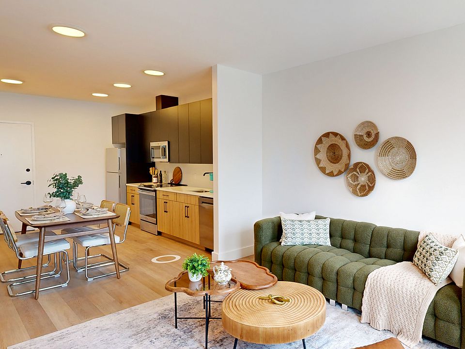 A 1-bedroom, 1-bathroom apartment with full amenities in a building with stainless steel appliances and plenty of natural light is appealing. Having a washer and dryer in the unit is always a plus, as is an office space in the building for those who work from home. Plenty of closet space.