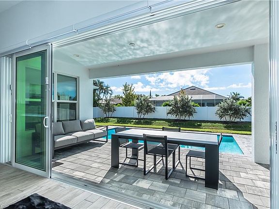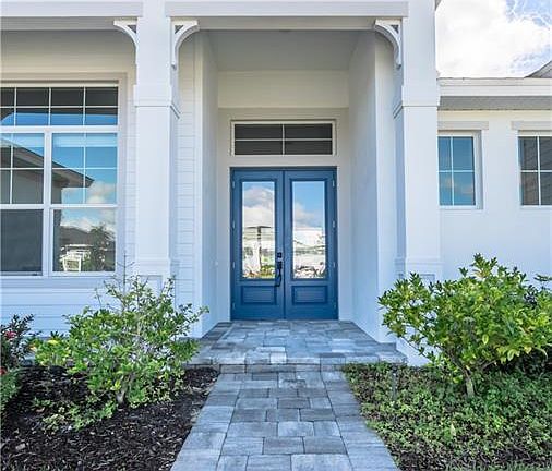 You'll fall in love when you see this pristine, one year old home located in the small enclave of thirteen residences called Chatham Woods. This immaculate home is close to beaches, golf, dining and shopping and some of the best schools in Naples. Built by Gulfstream Homes, this beautiful Hampton Model boasts 3 bedrooms plus a den, 2 bathrooms and a light, bright open concept floor plan. The home has a gourmet kitchen with a huge island has stainless steel appliances, quartz counter tops, living areas with volume ceilings with custom trim details, oversize windows, 9 foot interior doors, and wood-look tile floors throughout. No carpeting anywhere! Bathrooms have exquisite tile and marble finishes, dual sinks in the master bathroom, soaking tub and incredible, large glass shower with multiple shower heads. Complimented by a large, covered lanai/outdoor space, gorgeous pool and privacy fenced back yard, super-low fees and close-in to Naples, this home has it all!