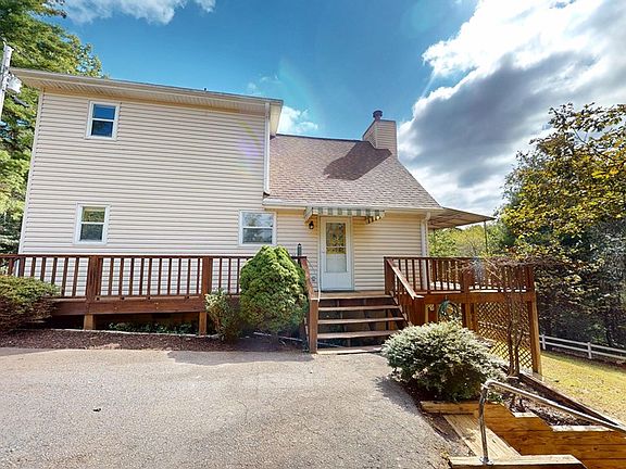 This inviting Mountain Chalet overlooks the rolling countryside & offers both comfort & opportunity. The home's large den flows into an open kitchen under soaring cathedral ceilings, creating a warm & spacious gathering place. A second oversized family room, also with cathedral ceilings, features a vented gas log fireplace flanked by custom wood bookcases. From here, stairs lead down to a private studio complete with its own kitchen & full bath—ideal as a mother-in-law suite, guest quarters, or creative retreat. Both bedrooms are generously sized with ample closets. The master bedroom enjoys peaceful views through the large windows of the family room. Surrounding the home are wide decks, raised garden beds, a well-groomed fenced yard, & thoughtfully landscaped grounds—perfect for outdoor living. For those seeking more, an adjacent parcel is available that greatly enhances the property's potential. This land features old orchards, a vineyard with irrigation & power in place, a wildflower-filled meadow, a large shed, partial fencing, & dual access from either the main drive or a separate entrance. Together, the home & additional acreage offer an outstanding canvas for a gentleman's farm. Imagine horses, chickens, goats, or expanded gardens. There's plenty of space for additional barns, garages, or even another home.The setting is peaceful & private, yet only a short drive to Murphy or Blue Ridge, with easy year-round access. This is a rare opportunity to enjoy mountain living with the freedom to create your own country retreat or working farmstead. This home is offered with the extra land shown within the photos with comments indicating they not part of the home for sale and are priced on another listing