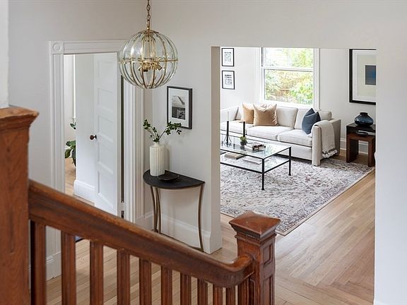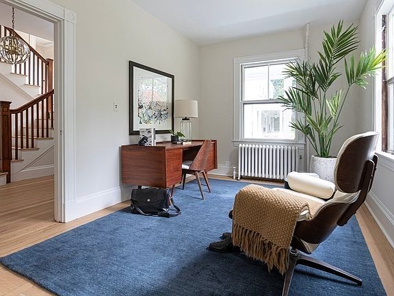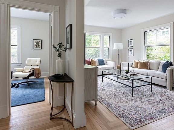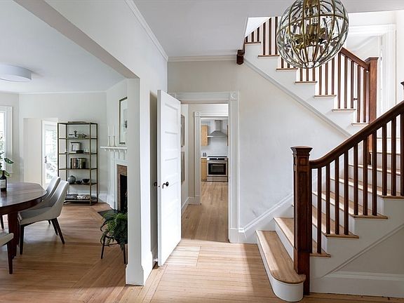 The Gurdon Fisher House (circa 1892), tucked on a tree-lined street just a block from Crystal Lake, offers a picturesque setting on nearly an 11,000 s.f. lot. This home is filled with architectural details, abundant natural light, oversized windows, and decorative hardwood floors. The foyer, highlighted by a beautiful staircase, opens into a living room, dining room with fireplace, and den/office. The kitchen with 2024 appliances, induction cooking, quartz countertops, island with breakfast bar and prep station, was designed to offer flexible space with access to the deck, patio, level yard & garden, as well as an enclosed back porch via mudroom with laundry. A full bathroom is on this floor. With three levels of living, there are 4 generous bedrooms & bathroom on the second floor including a primary bedroom with walk-in closet, and 2 bedrooms & full bathroom on the third. Located in the Mason Rice School district, near Highlands “T”, Newton Centre, Cold Spring Park, shops/restaurants