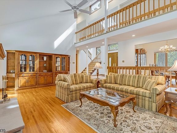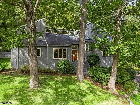Experience the perfect blend of serenity and convenience in this meticulously maintained contemporary home. Nestled on a private .58-acre lot, the property offers stunning mountain views while remaining just minutes from Morris Plains' bustling downtown, major highways, and the NJ Transit train station. The interior is a sun-drenched sanctuary with a dramatic two-story stone fireplace and vaulted ceilings that draw your eye upward. Oversized windows, transom windows, and skylights fill every corner with natural light. Two sets of glass sliders offer a seamless transition to the outdoors, blurring the line between indoor living and the peaceful landscape. Renovated kitchen with breakfast bar and stainless appliances open to a cozy family room and formal dining room. The main level offers a luxurious primary suite with brand-new carpeting, a custom walk-in closet, and a renovated private bath with a double vanity, soaking tub and an oversized tile shower. A second bedroom, a full bathroom, and a powder room complete the first floor. Upstairs, a lofted area overlooks the living room, connecting two additional bedrooms and a full bath. Recent, high-quality updates include a new driveway (2024), a stone retaining wall (2024), exterior staining (2021), and a hot water heater (2020), adding to the home's long history of pristine care. Absolutely stunning...