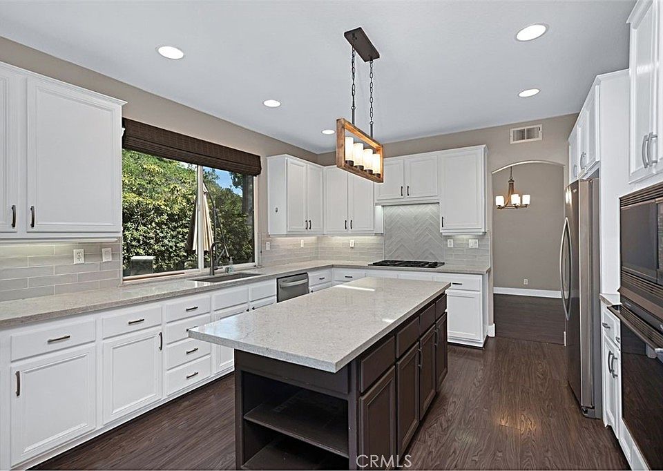 NEWLY AFFORDABLE - EXCEPTIONAL VALUE - enjoy all that prestigious Dove Canyon has to offer at 28 Lawnridge, a beautiful modern residence perched on a corner lot near the top of this coveted gated golf community in the foothills of Trabuco Canyon. This popular 4-bedroom floorplan (3 bedrooms and a large bonus room) has abundant natural light, an open layout, and is beautifully updated with luxurious surfaces and a modern neutral palette. As you enter, you'll find cathedral ceilings, elegant laminate flooring, an inviting living room, a dining room and family room with fireplace, guest bath and spacious laundry room. The kitchen has been tastefully remodeled with quartz countertops & custom tile backsplash, center island with a statement light fixture, stainless appliances, gas cooktop, wall oven and built-in microwave. Upstairs, a luxe primary suite awaits you with cathedral ceilings, ensuite bath with dual sinks, separate shower and soaking tub, and walk-in closet. Two large secondary bedrooms, an additional full bath, linen storage and an oversized bonus room complete the second floor layout. The entertainer's rear yard is ideal for year-round outdoor living, with a patio, firepit, low maintenance turf area, trees and more. An energy-saving whole house fan eases your energy usage, and the garage is equipped with a 240-volt Tesla charger that is compatible with all electric car models. The world-class amenities of Dove Canyon will be yours, with tennis, pickleball, a resort-style pool complex, 24-hour security and guarded gate, plus a variety of golf and social memberships available for the Dove Canyon golf club. Welcome home!