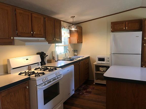 Well maintained Redmon mobile home (76x15) located in Ashfield Estates MHP. Home offers enclosed porch (26x11), living room & kitchen are open, appliances stay, island, oak cabinets, 4 bedrooms, 2 baths, laundry, open patio, shed (12x16). Updates: roof, carport, shed, patio, enclosed porch, seal coat parking area, handrails, leaf mesh in spouting, 2 newer toilets, most rooms painted. Blinds stay. This community is 55+ and pet friendly. Buyers must be approved by the park manager.