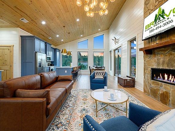 Welcome to Walking On Sunshine Cabin, your ultimate retreat nestled in the heart of Broken Bow, Oklahoma. This luxurious 2-bedroom, 2-bathroom cabin seamlessly blends modern comforts with the natural beauty of the surrounding pine forest—making it the perfect destination for a peaceful, rejuvenating getaway. Unwind in the hot tub as you take in the tranquil forest views, day or night. The expansive deck is ideal for outdoor living, featuring a BBQ grill, dining area, and cozy lounge seating. As evening falls, gather around the crackling fire pit to share stories and roast marshmallows beneath the stars. Inside, the open-concept living area welcomes you with soaring ceilings, rich wood accents, and large windows that fill the space with natural light. Enjoy meals at the spacious indoor dining table or dine al fresco with serene views as your backdrop. With high-speed Wi-Fi, a full-size washer and dryer, and generous parking, the cabin offers all the conveniences of home. Ideally located just a short drive from local restaurants, grocery stores, and popular attractions, Walking On Sunshine Cabin is your perfect base for exploring all that Broken Bow has to offer. Whether you're seeking adventure or relaxation, this cabin delivers the perfect blend of luxury and nature.