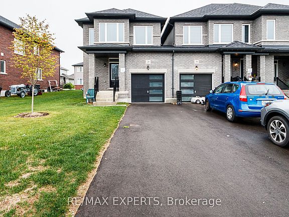 Welcome to The Villas of Wasaga Beach a rare, move-in ready 3 bedroom, 3 bathroom, end unit townhome offering the space and feel of a detached home, with over 1876 sq ft of open living space. Situated on a spacious end unit lot, this home features a modern brick exterior, a covered front porch, side yard space and additional windows for an abundance of natural light. Inside, you'll find a bright open-concept layout with beautiful hardwood flooring, separate living and family room spaces, elegant staircase, a modern kitchen, and a main floor powder room. Upstairs you will find a spacious primary suite which includes a large walk-in closet and 5-piece ensuite, two more spacious bedrooms, convenient 2nd floor laundry room and a4-piece main bathroom. An unfinished basement provides flexibility for storage and use. Located just minutes to The World's Longest freshwater beach, with a short drive to ski hills, spas and golf in Collingwood and Blue Mountain. Surrounded by schools, walking trails, and everyday amenities!