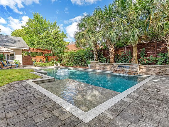 Seller to replace roof with acceptable offer! Welcome to your very own Sanctuary. Your very own private backyard oasis awaits with mature trees and native sourced landscaping. Enjoy a heated, custom-built pool with a waterfall, surrounded by open patios ideal for gatherings, plus a fire pit that invites year-round enjoyment. This home blends sophistication, warmth, and resort-style living all in one.Step into timeless elegance with this beautifully appointed home, where classic charm meets modern comfort. Inside, the living room features custom built-in bookshelves and a cozy gas fireplace, creating the perfect space to unwind. The kitchen is a chef's delight with a gas range, quartz countertops, white subway tile backsplash, and tall custom cabinetry that maximizes storage in style. Gorgeous hardwood flooring flows throughout, complementing two spacious living areas that offer plenty of room for relaxation or entertaining. This beautiful home and property are located on a peaceful, tree lined street, across from secluded Garnier's Bayou and steps away from Longwood community park on the bayou. Bring your paddle board or kayak and enjoy a day on the water or just an evening paddle.
