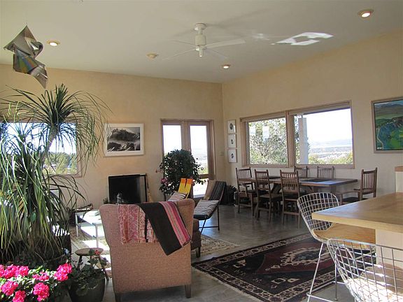Perched on an outcropping of pinon and juniper on 6.7 acres overlooking the Hondo Valley, this 1770 square foot 2 bedroom, 2 bath home is a rare find. Contemporary and custom designed, the home is an opportunity for lovers of art and nature. One feels the serenity and privacy of a retreat, yet is equidistant between historic Taos, NM and the world class Taos Ski Valley. Each light infused room has the quality of living in the landscape. The spacious, open floor plan includes an atrium, open to the sky and featuring a water element. Enjoy spectacular sunsets from the western portal and lunches on the east facing patio, making entertaining a joy. Entering this property from the winding eastern drive, one feels in harmony with the natural surroundings. For the discerning retiree or young millennials , this home is a must see!