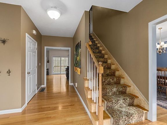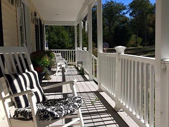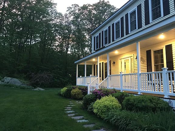 I've lived in this house for 15 years and comfortably raised 4 kids and a dog. I hope the next buyers love it as much as we have. A light yellow colonial w/ black shutters and a southern facing FARMER'S PORCH. Peacefully situated on a country road lined with stone walls. Across the street from a Christmas Tree/Blueberry Farm. First floor; 9' ceilings, hardwood floors, tiled mudroom, large kitchen/family room with: gas fireplace, cherry cabinets, granite countertops and 54"x72" island, crown molding/wainscoting in the dining room. living room has double solid doors for a first floor quiet space. Second Floor; 4 bedrooms and a bonus room over the garage, walk-in closet and bonus closet in master suite, cherry cabinetry in both 2nd floor baths, jacuzzi and shower with seating in master bath. Sargent & Greenleaf U.S. Safe in basement included. New well pump 10/2015 and new 2 zone central air system 6/2018. . Conveniently located near Routes 16, 495, 146