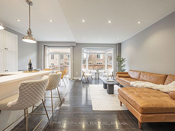 Beautifully upgraded and exclusive like-detached link home in one of Markham's top school zones-Beckett Farm PS and Pierre Elliott Trudeau HS-and minutes to Montessori private schools.Ideally located near Hwy 404/407 and the GO Station for unbeatable convenience. This bright, south-facing home features 9 ceilings, hardwood throughout with newly installed flooring upstairs, designer colours, feature walls, and modern finishes. The modern open concept kitchen offers stone countertops, stainless steel appliances including a gas cooking range, upgraded cabinetry, ceramic backsplash, and pot lights. The finished basement with walk out provides flexible space for work, play, or entertainment. Outdoor upgrades include interlocking in both the front and backyard and a rare south facing balcony. The home also features 3 parking spots and EV-ready garage equipped with a dedicated 240V power supply - easy installation for your EV-charger.