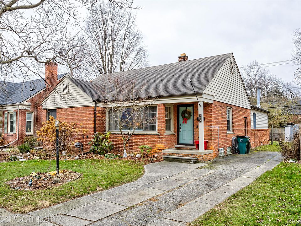 Charming brick ranch in Pleasant Ridge with tons of character and an inviting layout, perfect for modern living. The covered front porch welcomes you into a bright living room with gleaming hardwood floors and coved ceilings, flowing seamlessly into a cozy dining area complete with charming built-ins. The roomy kitchen offers ample cabinet space, modern appliances, and bar seating, leading to a spacious family room anchored by a stunning fireplace and direct access to the backyard deck. Three generously sized bedrooms share a tiled bath down the hallway. The full basement provides tons of storage, laundry space, and endless possibilities. The fenced backyard features a large deck, garden beds, and a storage shed, perfect for outdoor activities. Ideally located close to Pleasant Ridge Community Center amenities and just a short drive to downtown Royal Oak or Ferndale. Welcome Home!
