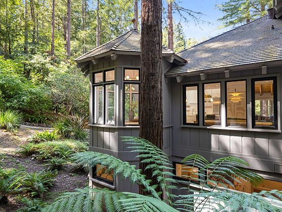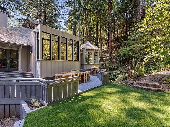 Architectural Redwood Retreat with Private Trails in Blithedale Canyon ~ Designed in 1975 by renowned architect Paden Prichard and recently reimagined, this home is a modern sanctuary that celebrates its timeless connection to nature. Nestled at the end of a quiet street on a .67 acre lot along with an additional second lot of approximately 3 acres of redwoods with private trails leading to West Blithedale Avenue and the Railroad Grade Trailhead. This rare property blends architectural pedigree with contemporary comfort. Two versatile new living spaces expand the possibilities: a brand-new 1BR/1BA ADU with kitchen, laundry, and deck, PLUS a detached studio with half bath and kitchenette for office, gym, or guest suite. The nearly 4,000 sq. ft. main residence offers clean-lined interiors, an open-concept great room, fully outfitted chef's kitchen, and walls of glass framing serene tree-filled views. Five bedrooms and three and a half baths include a tranquil primary suite with terrace and spa-like bath. Additional highlights include a three-car garage, flat outdoor areas, and direct trail access. Just minutes from downtown Mill Valley, award-winning schools, and San Francisco, 28 Marsh offers architectural history, modern flexibility, and a setting unlike any other.
