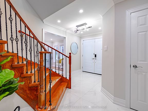 $180K+ in upgrades and renovations! Welcome to Lucky 28 Marydale Ave, a beautifully upgraded family home offering over 3,800 sq.ft. of living space (2,597 + 1,221 sq.ft.), perfectly positioned on the border of Markham and Toronto, just a 2-minute walk to Steeles Ave. Overlooking beautiful parks and green space with abundant street parking on both side, this rare gem features an elegant double-door entrance, enclosed glass porch, and a brand-new extended interlocking driveway for up to six cars . Inside, modern upgrades shine with designer light fixtures, smooth ceilings with pot lights, gleaming hardwood floors, a graceful curved staircase, and a cozy family room with a gas fireplace . The sleek open-concept kitchen is a chefs delight, showcasing stainless steel appliances, premium countertops, and wraparound windows with garden views . Comfort is ensured year-round with a newer furnace, A/C, and owned water softener. The fully finished basement with dual staircases and a private entrance offers two bedrooms, a bath, and a spacious living area ideal for an in-law suite or rental income (approx. $2000+). Just steps to Walmart and Costco, an 8-minute drive to Pacific Mall, and close to schools, banks, and every essential amenity , this home beautifully combines modern living, unbeatable convenience, and timeless charm .